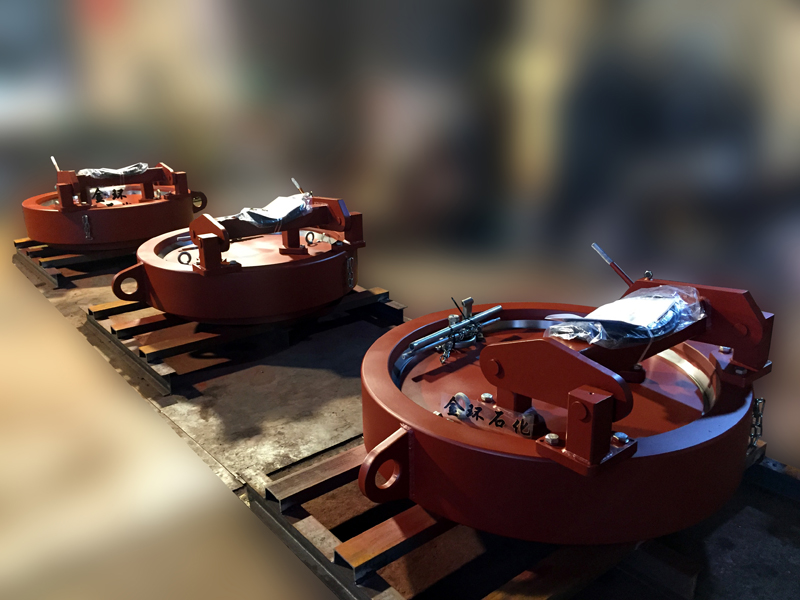 快開盲板是壓力容器快開門蓋的一種型式,廣泛應用在天然氣領域中的需經(jīng)常啟閉的設備上。常用的快開盲板分為牙嵌型、卡箍型、插扣型、鎖環(huán)型、漲環(huán)型、固定壓力環(huán)型等典型的結(jié)構(gòu),以手動操作為主。